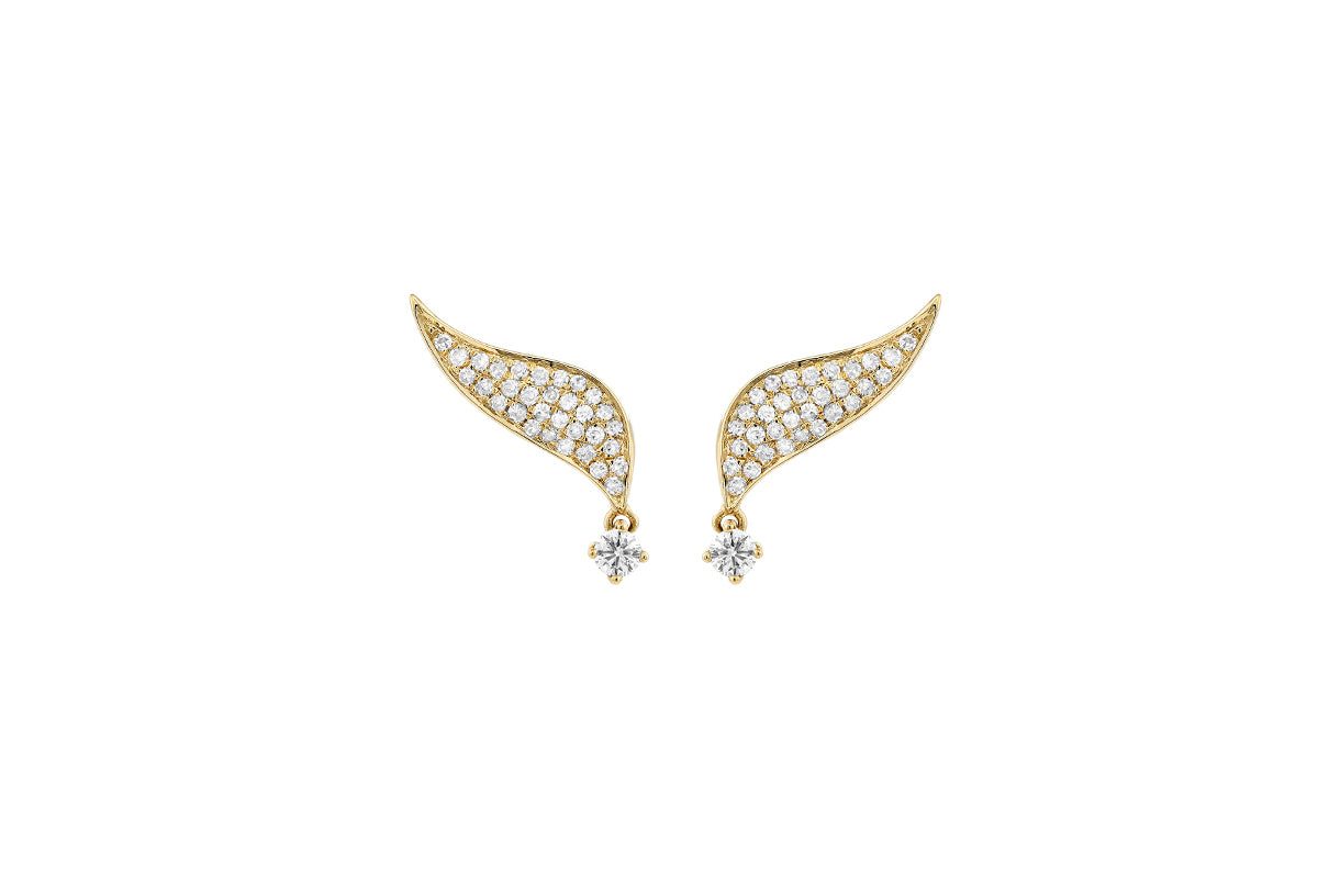 Contemporary Design 14K Yellow Gold & Diamond Pave Stud Earrings