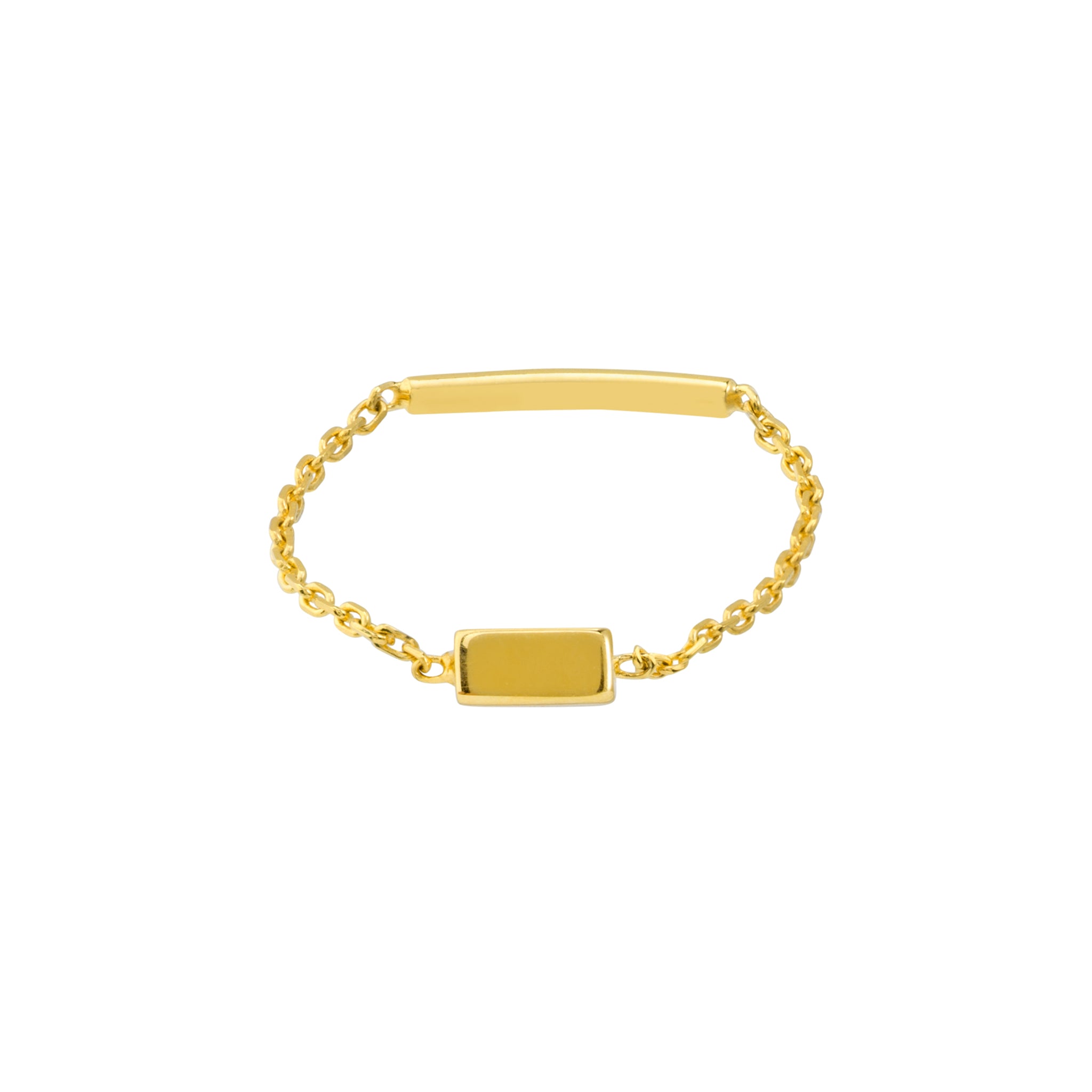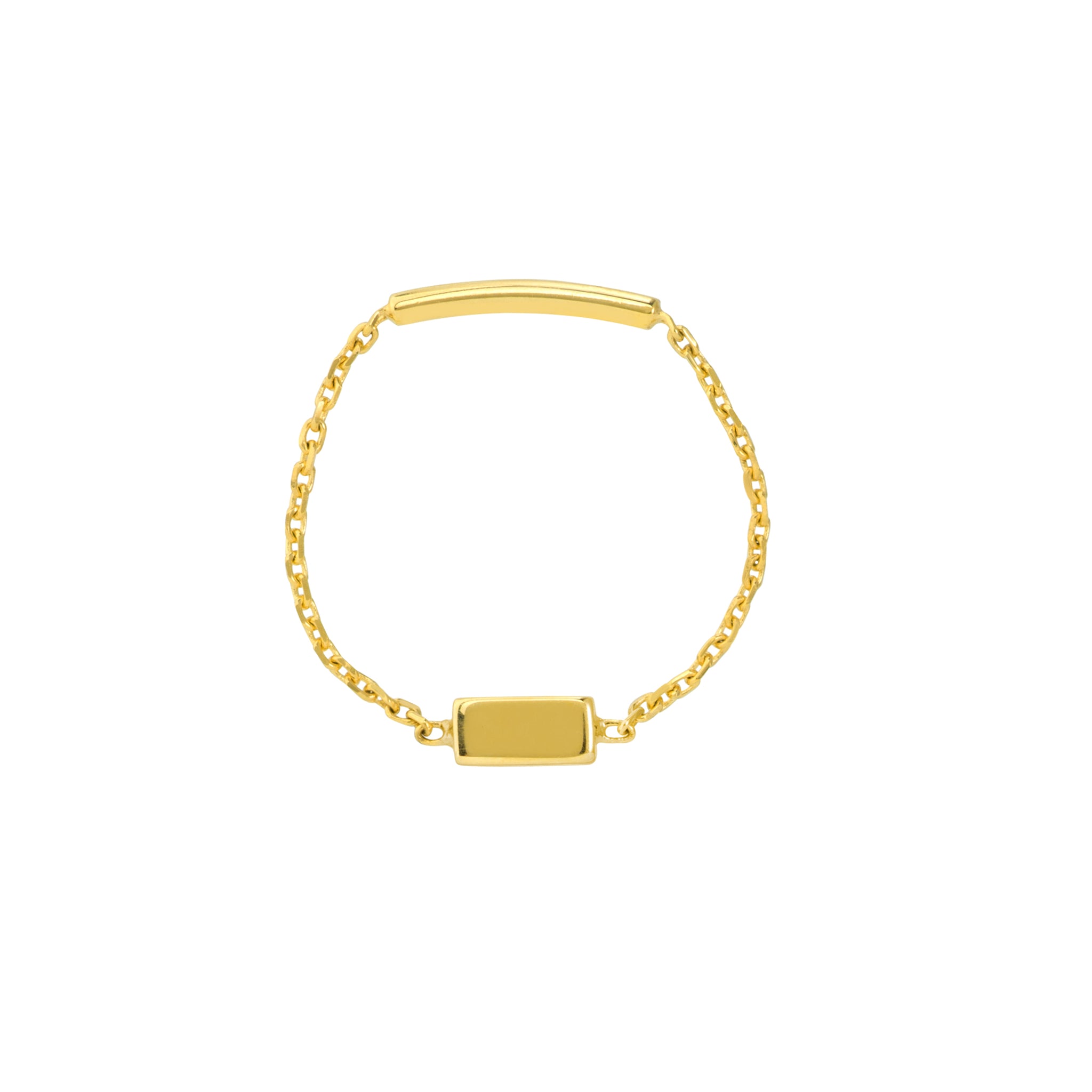 Contemporary 14K yellow gold bar chain ring with a sizing bar. Perfect for stacking with other rings, or wear alone.