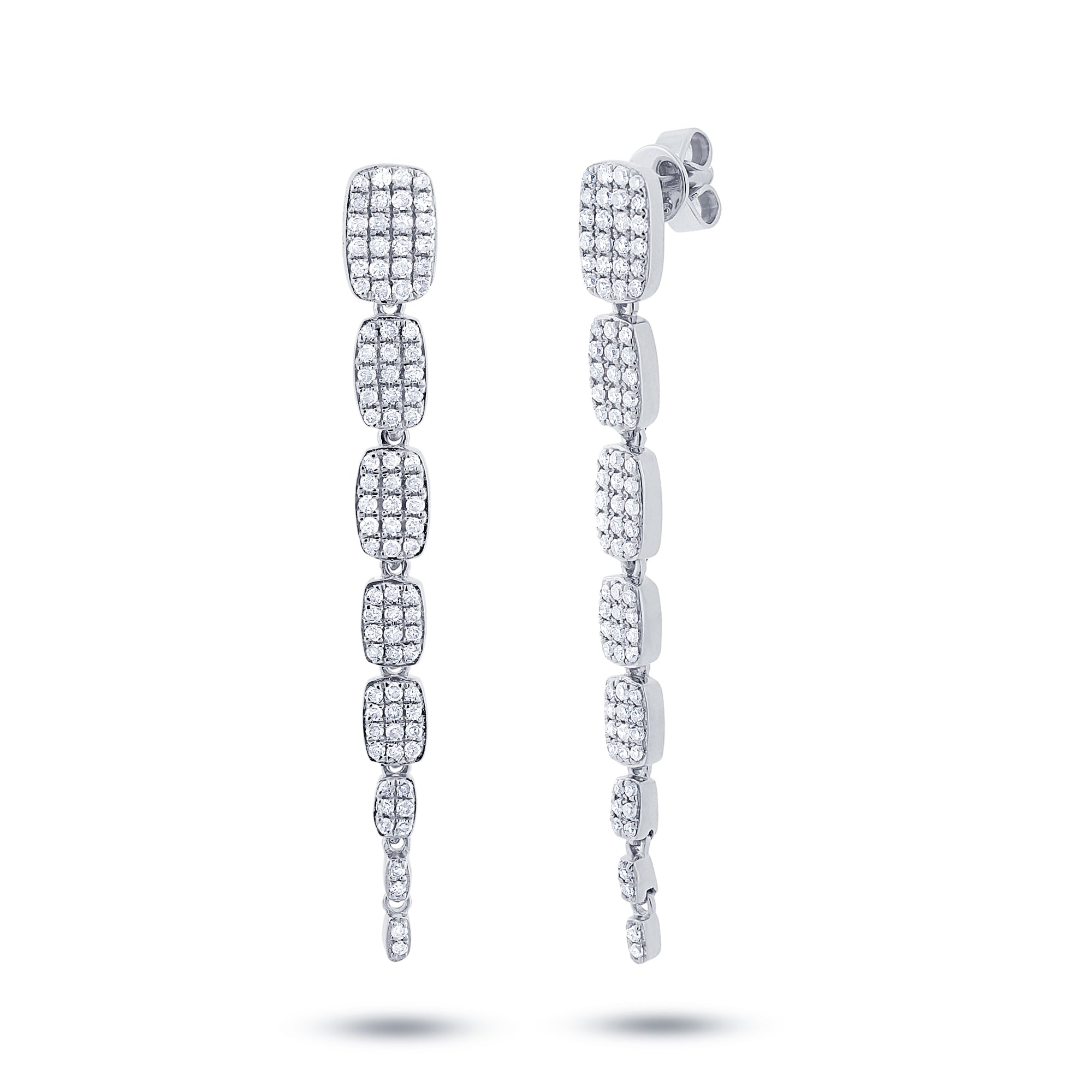 A stunning look with pave diamonds set in an encrusted graduated design with movement to a slithering diamond point. A contemporary design to dress up your evening. Set in 14K white gold and features 0.64 CT diamonds.