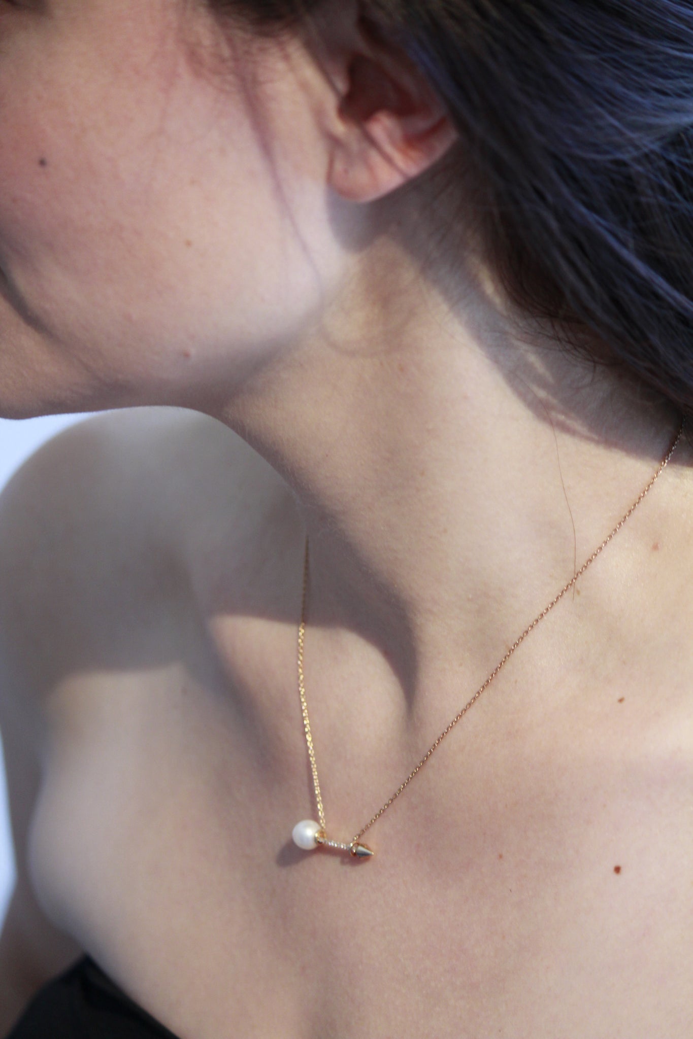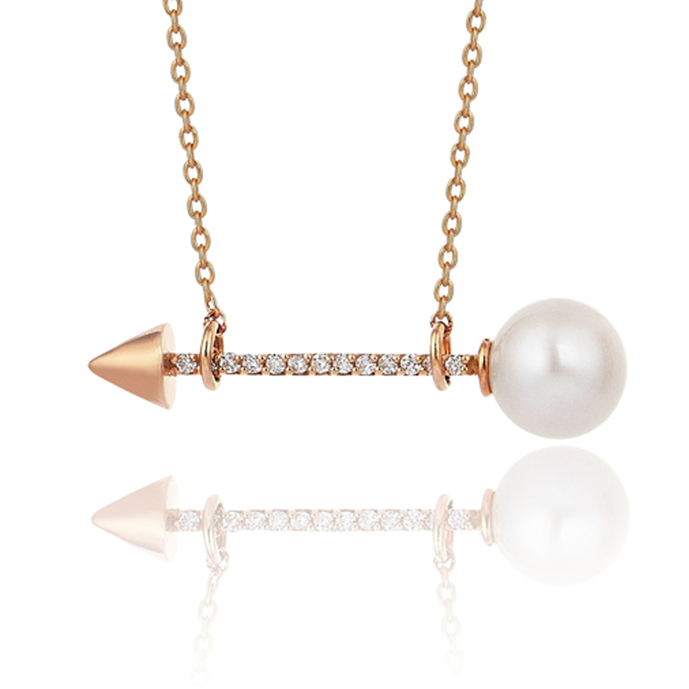 SHIVA Rose Gold Pearl Arrow Bar Necklace