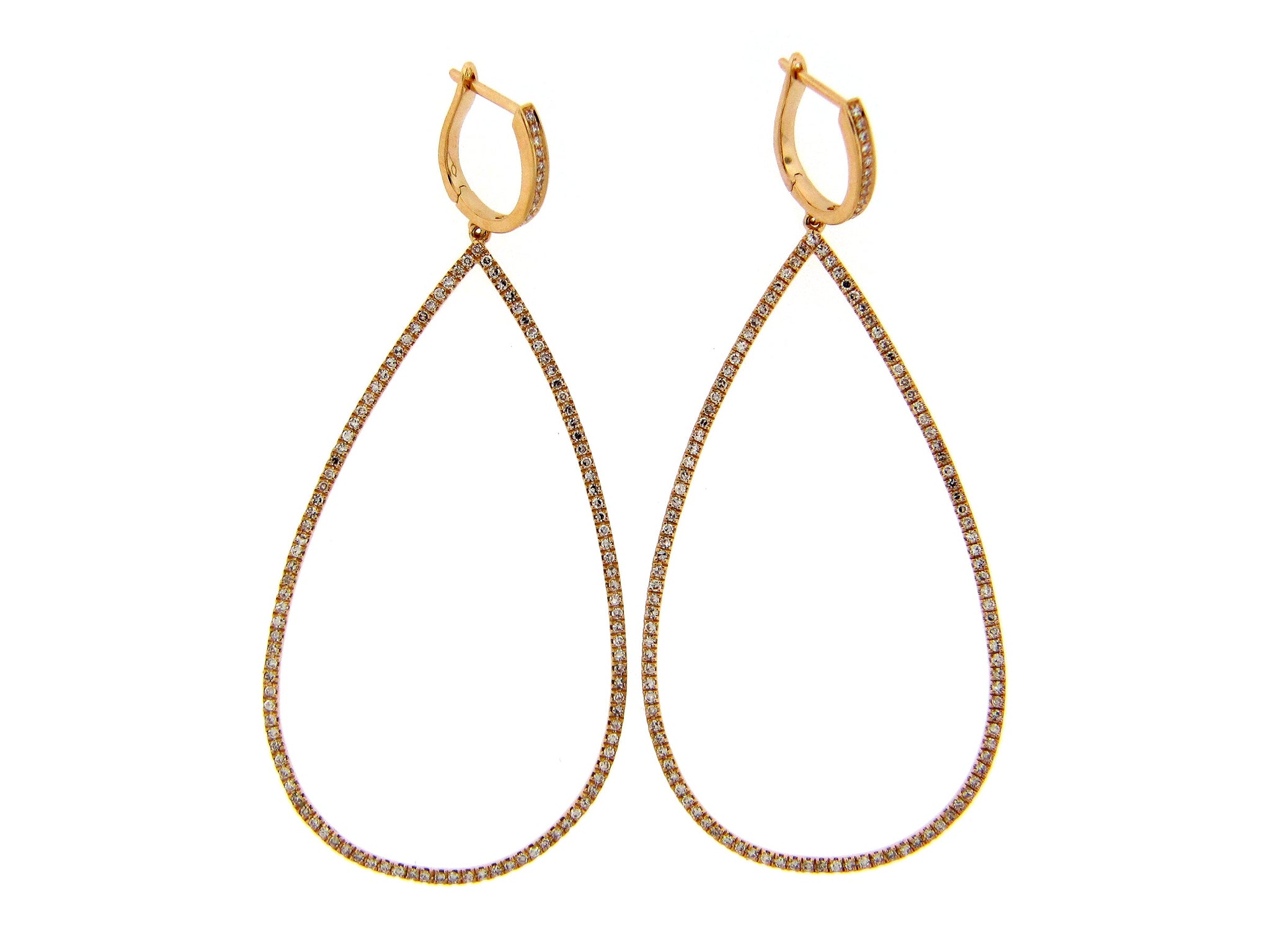 These dazzling pave open pear shape drop earrings are crafted in 14K white gold and add a sleek and sophisticated style.