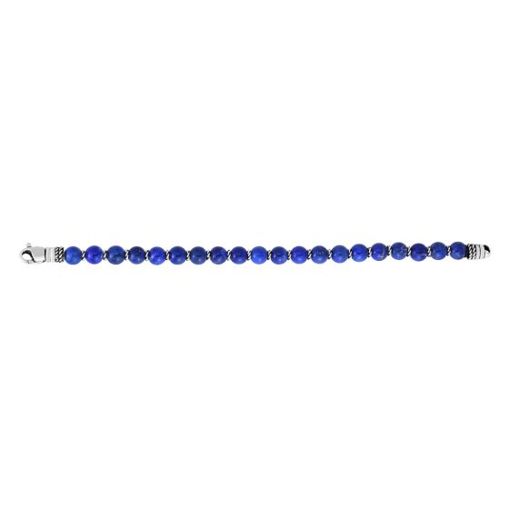 Sterling Silver Men's Blue E-Coating 8.5" Box Link Bracelet with Lobster Clasp.