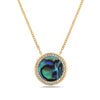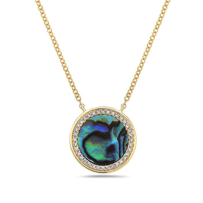 This sweet little piece is a divine collection of the finest gems in one stunning necklace. Hanging from a 16-inch chain this 1/2 inch disc is surrounded by stunning diamonds that will surely delight.